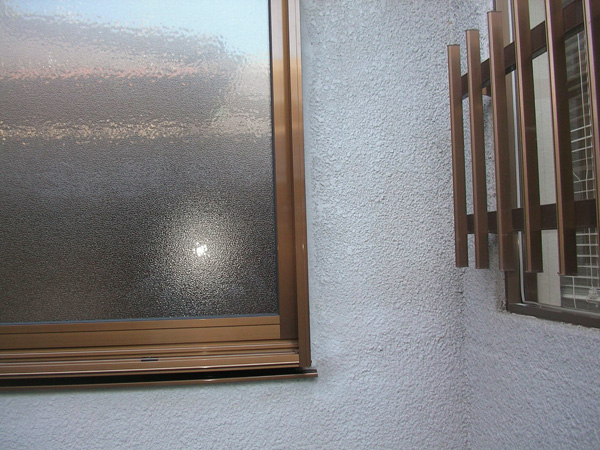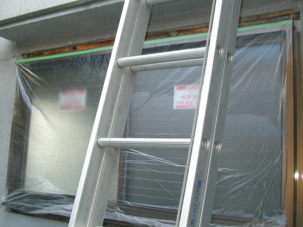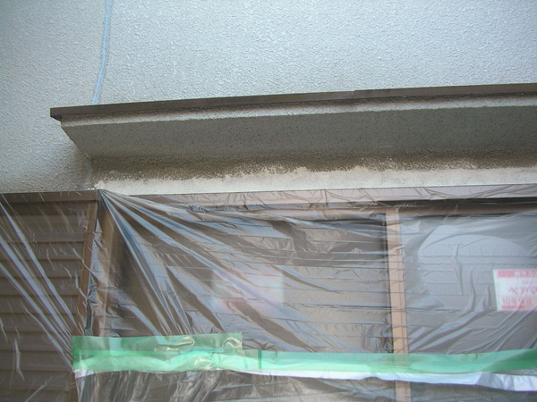 刷毛での塗装は補修部分の色をいくら調色しても元の塗装が枯れているため色合いが変わって見えますので、 サッシ周囲の部分的な補修は吹付け塗装によるぼかしで極端な塗装の変化を防ぎます。