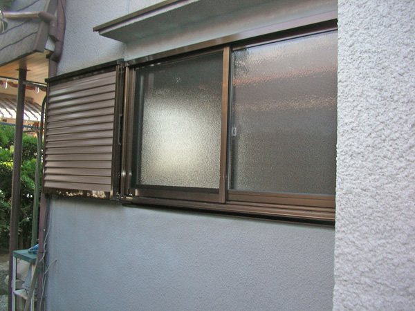 元々は戸袋がなかったのですが、美観と風で収納された雨戸板がパタパタと音を発生させるのを防ぐため戸袋を取付けています。もちろん網戸もセット。