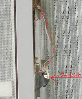 左の写真は河内長野の住宅団地で当店が防犯ガラスに取り替える際に撮影しました。
