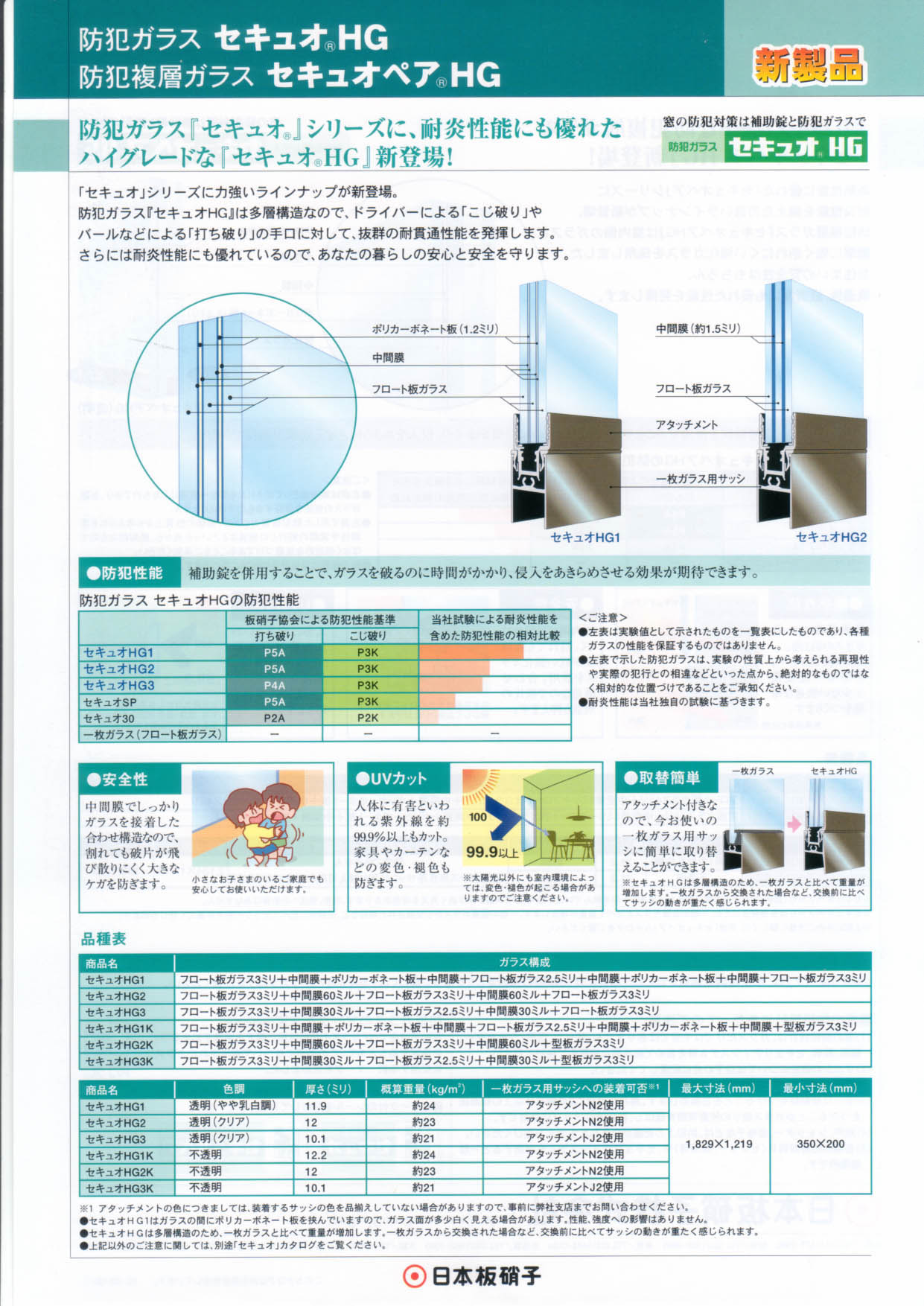 販売終了製品です。 セキュオHGは日本板硝子社の製品で、ここではメーカーカタログを掲示しています。 画像はご覧頂きやすいように解像度を適正化してありますのでダウンロード時間が掛かる場合があります。