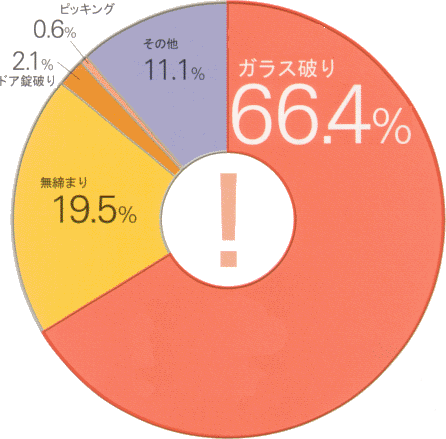 こじ破りによるガラス破壊侵入がダントツに多く発生しています。