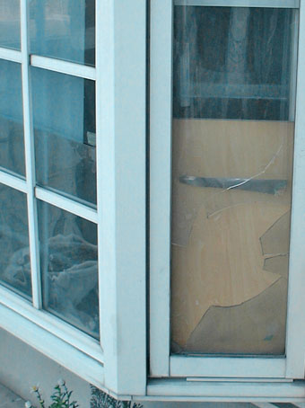 ガラス破りと言えば住宅だけでなく多くの店舗も狙われ、手口も荒っぽいのが特長。 当店が写真を撮ったガラス破り未遂と強盗によるガラス破壊の例です。