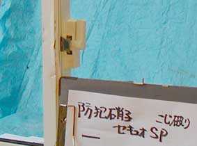 防犯ガラスの高グレード品で、ガラスの構成はガラス2.5㎜+ポリカ1.2㎜+ガラス2.5㎜からなる板厚6.7㎜のセキュオSPです。