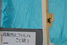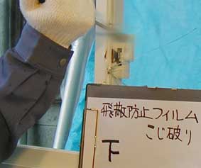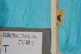 フィルムがあるためにガラスが外れず最後に突き破ってクレセントを回してしまいました。