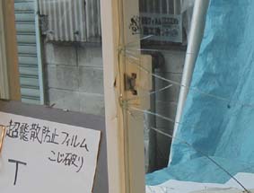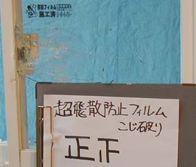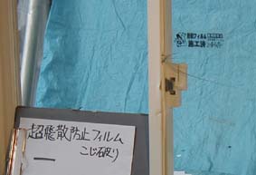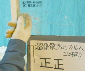 住友3M社の超飛散防止フィルムスーパーレイヤー400を装着したフロート5㎜ガラスです。