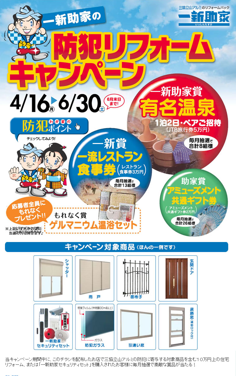 当たる! 当たる! 三協立山アルミニウム工業株式会社より6回目の一新助家リフォームキャンペーン(H19年4月~6月)開催が終わりました。