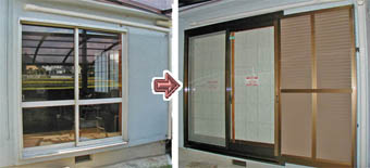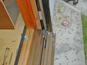 今回、元あった雨戸も相当傷んできたのでこの際、サッシ丸ごと取替えになりました。