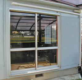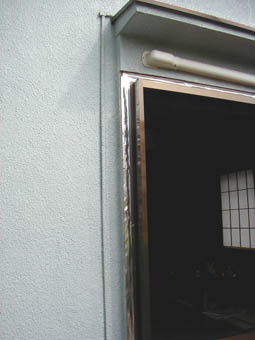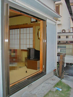左の写真は雨戸収納枠を取り付ければ終了の状態ですが、10月の日の暮れは早く、少し黄昏れてきました。 |