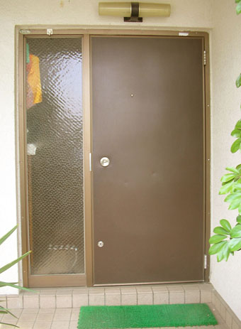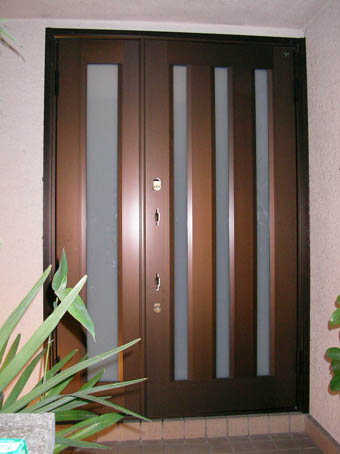 元々は袖付の勝手口ドアのような玄関でドア本体もフラッシュドアのため暗いものでした。