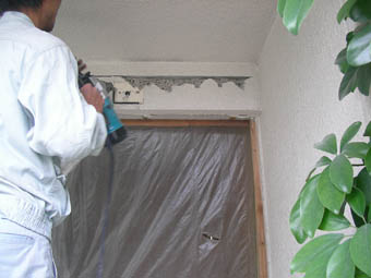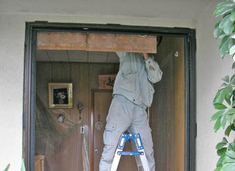 そこで高さを広げての玄関取替え工事になりました。でも予想通り鉄筋コンクリートの壁でした。