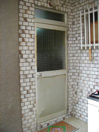 勝手口に網戸を取付けて欲しいとのご依頼で拝見しましたところ、ドアも相当傷んでいましたので、