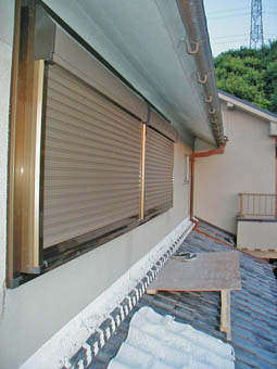 外部の雨仕舞いには強力な三協SR工法を採用してシャッター付きサッシに取替えました。