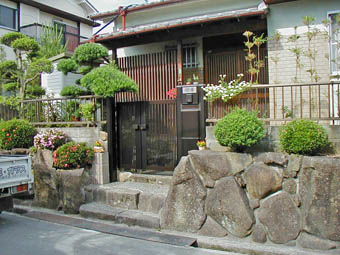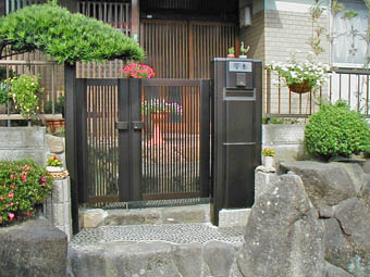 ガーデンエクステリアの中でもひときわ目立つ門柱門扉、和風の玄関前アプローチにもジャストマッチ。