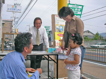 メガネの紺色服の人は地元卸の(株)小間久商店の社員で、今回は助っ人に来てくれました。