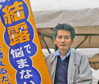 さすがに商工祭は動員数が多く、私は真空ガラスの説明に一生懸命、そしてノボリを手に記念写真。